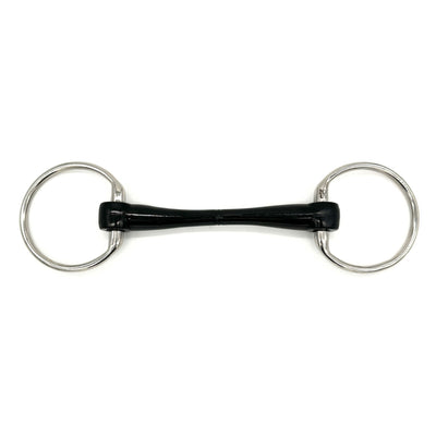 The Eggbutt snaffle is constructed with stationary rings, providing a stable fit in the horse's mouth. Unlike other bits, the Eggbutt offers immediate action as the rings cannot move independently from the mouthpiece. The degree of severity of the bit's effect is determined by various factors, such as the type, thickness, and material of the bit, ranging from mild to sharp. As the rings are firmly attached to the mouthpiece, bit guards are not necessary. The Eggbutt snaffle is particularly suitable for young horses and riders with moderate control.