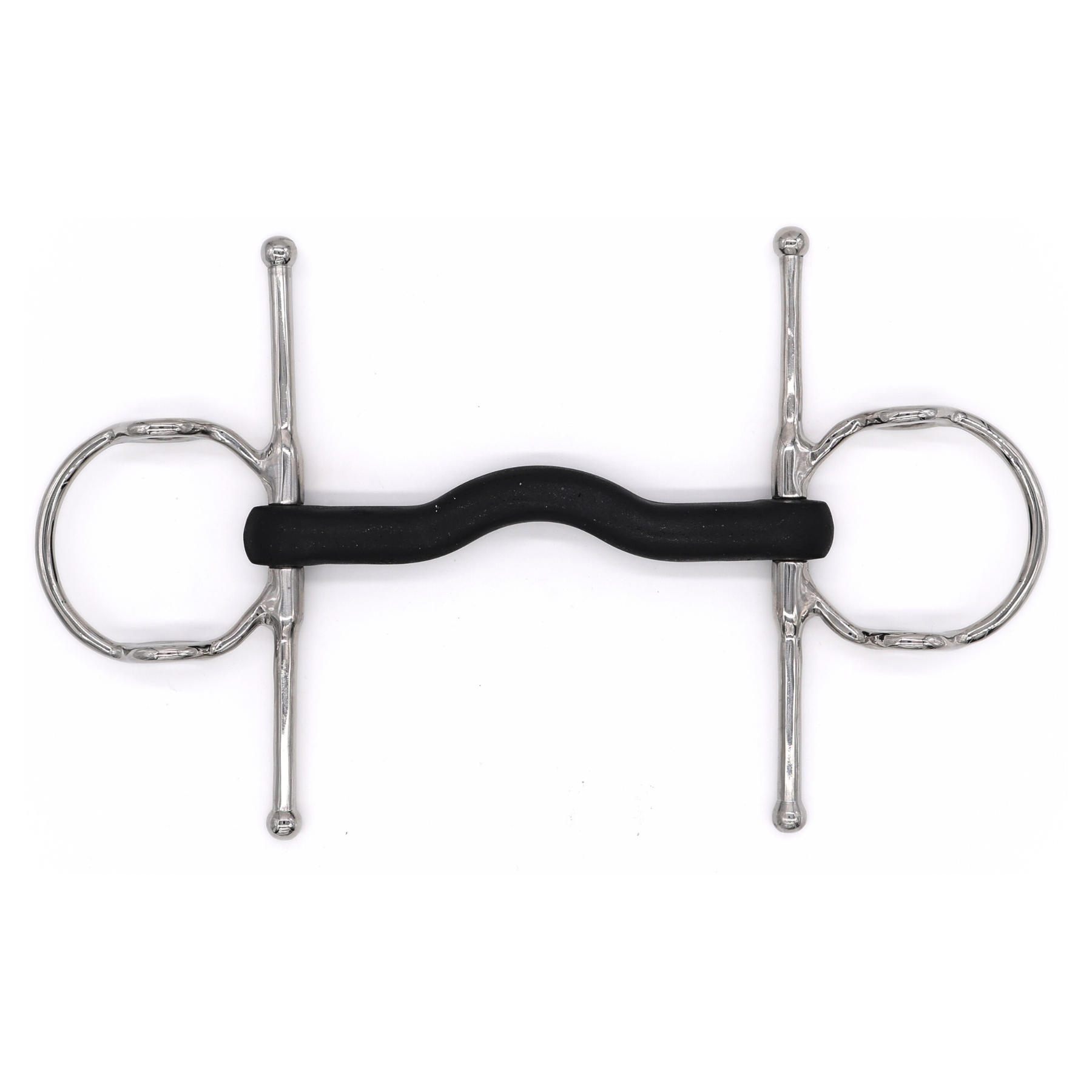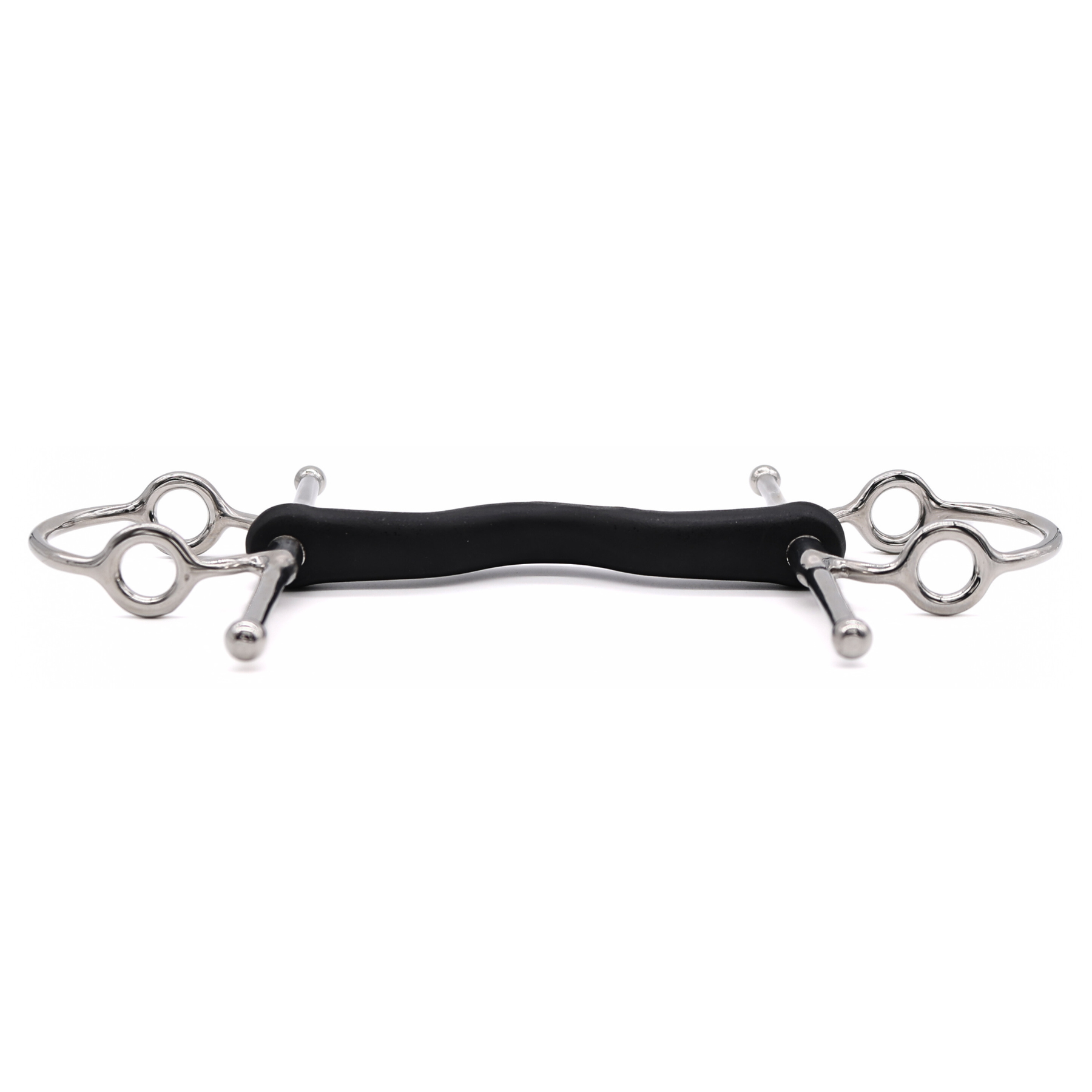 The Hard Rubber Port Nelson Gag bit is an expertly crafted piece of equestrian equipment. Constructed from hard rubber, it ensures a gentler and more comfortable contact with the horse's mouth. Its medium port design facilitates clear signals and ample tongue relief, promoting unhindered communication. The inclusion of the Nelson Gag mechanism not only offers riders subtle lift and control but also enhances the bit's effectiveness in aiding precise turns and directional cues. By allowing for both vertical responsiveness and lateral guidance, it becomes an invaluable tool for riders who prioritize clear communication, especially during maneuvers that require turning. The Hard Rubber Port Nelson Gag seamlessly combines comfort, precision, and turning efficacy, marking it as a standout choice for riders aiming to elevate their training and riding techniques.